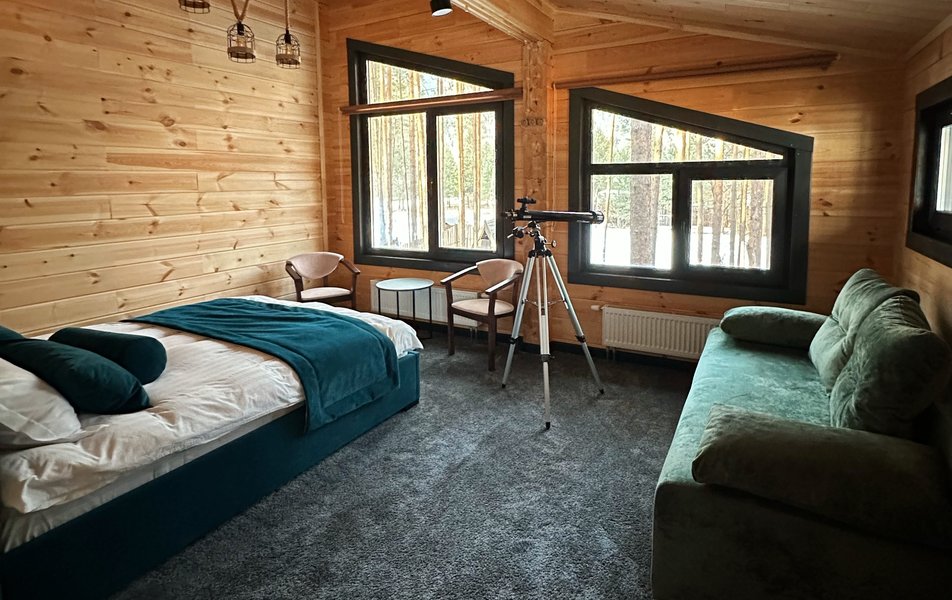 База отдыха представляет собой отдельно стоящие двухэтажные дома и шале с видом на реку и горы. Все здания выполнены из бруса с внутренней отделкой из натурального дерева. В комнатах есть вся необходимая мебель, телевизор, кухонная зона с необходимой техникой. Ванная комната оснащена душевой кабиной и туалетными наборами. Возле домов - собственная зона отдыха, у шале - первая береговая линия с частным спуском к реке.