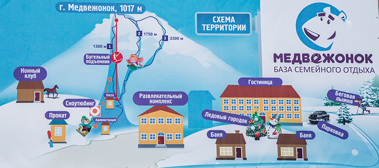 База семейного отдыха «Медвежонок» - это отдельная территория со своей горой Медвежонок с бугельным подъемником, с полностью развитой инфраструктурой. Подходит как для семейного, так и для молодежного отдыха, а также для групп туристов