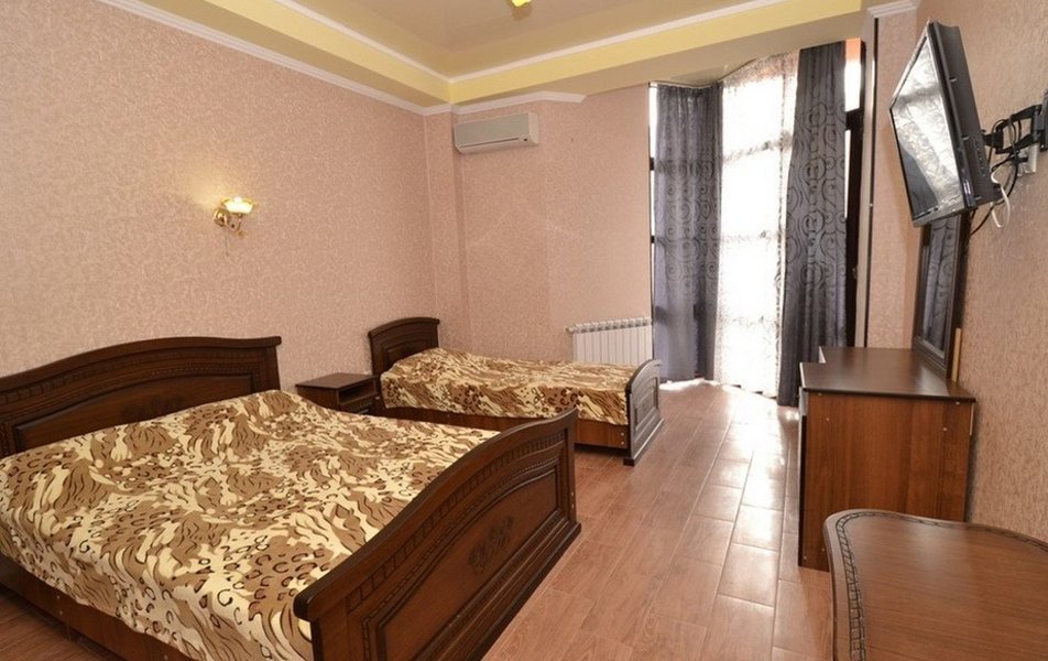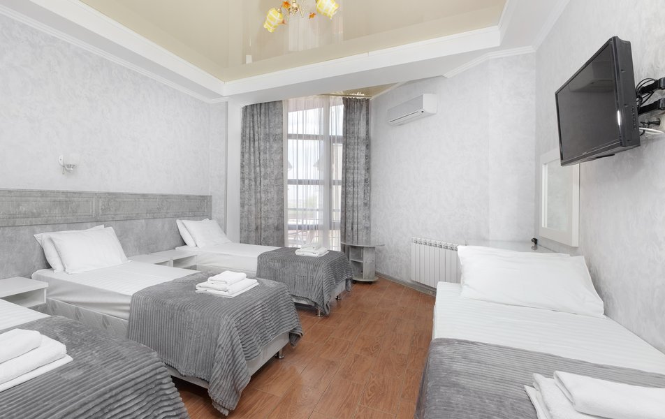 На огороженной и благоустроенной территории отеля возвышается 4-этажное здание отеля с жилым фондом, способным одновременно вместить до 250 человек. В каждом номере есть необходимая бытовая техника: сплит-система, мини-холодильник, телевизор и Wi-Fi, другие удобства.