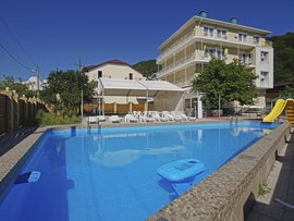 неблагоприятную для купания в море погоду. Игровые площадки, беседки, морские горки позволят весело провести время с друзьями, а если вы приехали оздоровиться, можно посетить массажный кабинет или СПА-центр. Для постояльцев со своим авто, если охраняемая парковка.