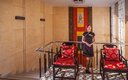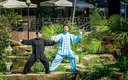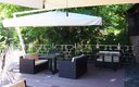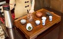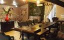 столы и стулья в восточном стиле из натурального дерева; чайный мастер заварит традиционный чай