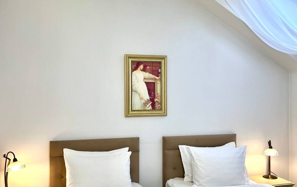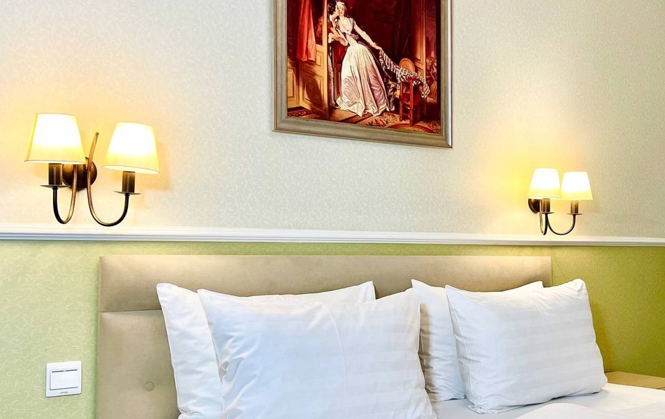 Четырехэтажный корпус отеля, стилизованный под фасады знаменитого Эрмитажа, разместился на Ульяновской улице. В здании имеется лифт, а жилой фонд включает в себя номера различных категорий комфорта с классическими интерьерами. В каждом номере предусмотрен кондиционер, есть телевизор с дополнительными каналами, санузел с душем и косметическими принадлежностями.
