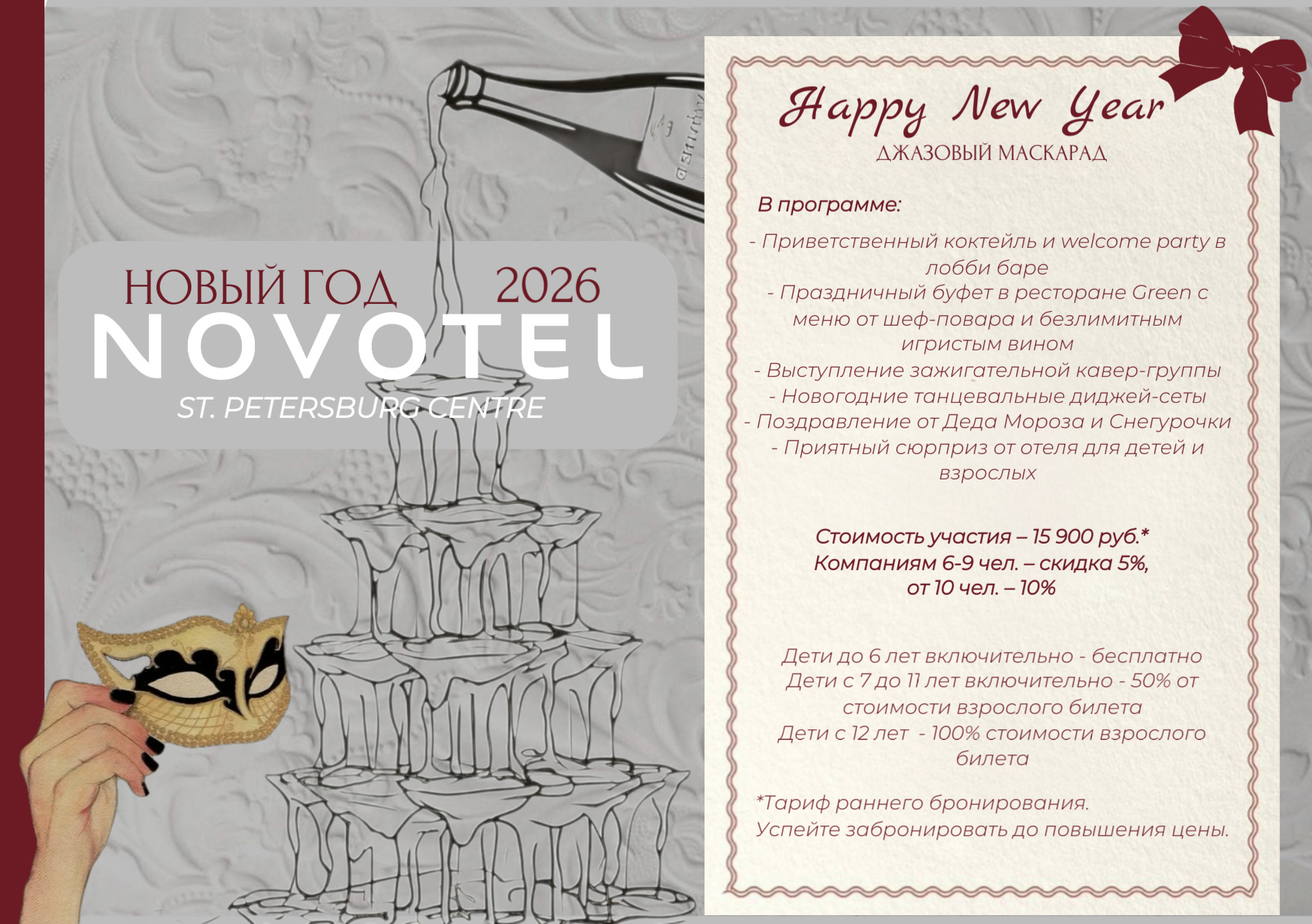 Рады сообщить о проведении праздничного ужина в Новогоднюю ночь в отеле Novotel St.Petersburg Centre!